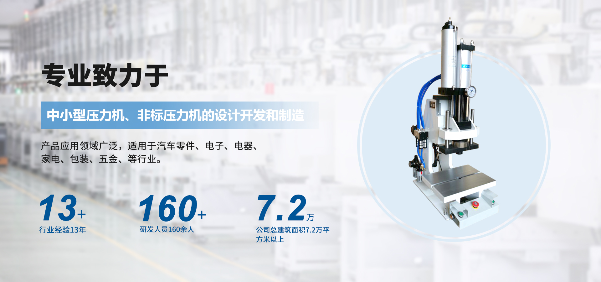 煙臺(tái)壟鑫沖壓設(shè)備有限公司是集經(jīng)營、生產(chǎn)、技術(shù)開發(fā)為一體的經(jīng)濟(jì)實(shí)體,專業(yè)致力于中小型壓力機(jī)、非標(biāo)壓力機(jī)的設(shè)計(jì)開發(fā)和制造。在引進(jìn)德國、日本等國家先進(jìn)的鉚壓控制技術(shù)及機(jī)器設(shè)計(jì)理念的基礎(chǔ)上,結(jié)合相關(guān)行業(yè)的實(shí)際需要,開發(fā)出各種臺(tái)式、落地式氣動(dòng)壓力機(jī)、手動(dòng)壓力機(jī)、氣液增壓機(jī)、氣液增力缸、旋鉚機(jī)、無鉚釘鉚接機(jī)等鉚接設(shè)備。產(chǎn)品應(yīng)用領(lǐng)域廣泛,適用于汽車零件、電子、電器、家電、包裝、五金、等行業(yè)。公司視質(zhì)量為生命,并一貫遵循對每一臺(tái)產(chǎn)品負(fù)責(zé),對每一位用戶負(fù)責(zé),真誠為您服務(wù)。 自公司成立以來,秉承“誠信,創(chuàng)新,專業(yè)”的經(jīng)營理念,以優(yōu)質(zhì)的產(chǎn)品,完善的售后服務(wù),樹立良好的品牌形象,服務(wù)于廣大新老顧客。我們竭誠于各位同仁攜手并進(jìn),共謀發(fā)展。
